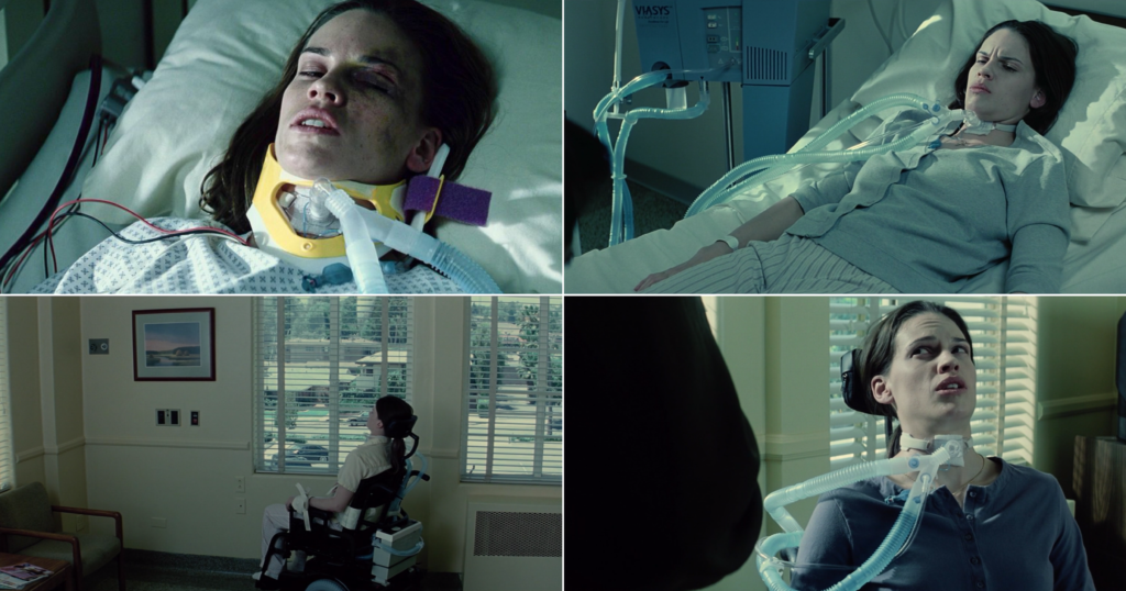 Ein Beispiel: Im Film „Million Dollar Baby“ von Clint Eastwood aus dem Jahr 2004 hat die Hauptfigur Maggie (Oscar für Hilary Swank) einen Unfall bei einem Boxkampf und ist in Folge dessen vom Hals abwärts gelähmt. Kurz darauf muss zusätzlich ihr linkes Bein amputiert werden. Sie leidet stark unter ihrem extrem eingeschränkten Zustand und äußert schnell den Wunsch, so nicht mehr leben zu wollen. Statt über eine Therapie oder irgendeine Art von Perspektive nachzudenken, erscheint den anderen Figuren und auch den Zuschauern dieser Wunsch fast sofort nachvollziehbar. Ihr Zustand wird als dermaßen unerträglich dargestellt, dass eine Lösung abseits von Selbstmord nicht einmal in Erwägung gezogen wird. Nach diversen, erfolglosen Versuchen Maggies, sich selbst das Leben zu nehmen, beschließt ihr väterlicher Freund und ehemaliger Boxtrainer Frankie (gespielt von Clint Eastwood), ihr den Wunsch zu erfüllen und tötet sie mittels einer Überdosis im Krankenhaus, im Film eine selbstlose und gradezu gnädige Geste.