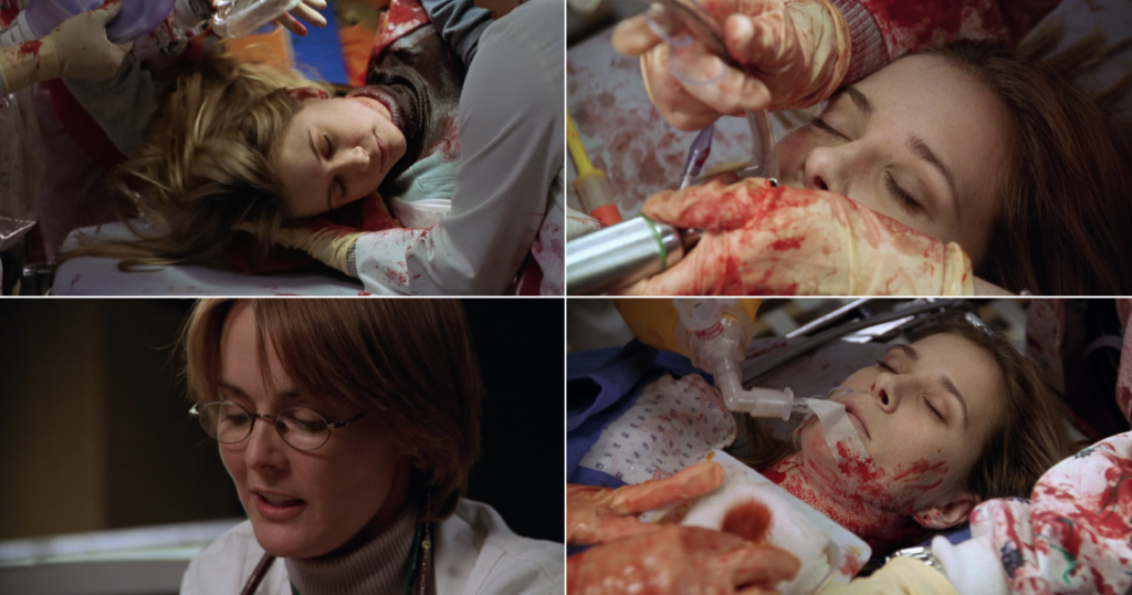 Fachspezifische, medizinische Themen werden in „ER“ auf der visuellen Ebene emotional, auf der inhaltlichen Ebene rational an die Zuschauenden herangetragen. In den Gesichtern der Charaktere kann man erkennen, ob ein Fachwort etwas Gutes oder etwas Schlechtes bedeutet, ob sie unter Stress stehen, sich konzentrieren müssen oder eine Verletzung doch nur eine Lappalie ist. Als Zuschauer*in hat man den Eindruck, man steht selbst in diesem Behandlungsraum und erlebt alles aus nächster Nähe. Im *echten Leben* bekommt man nicht so oft solche detaillierten Einblicke in so viele Bereiche oder Situationen, also man kann nicht einfach mal so in einen Operationssaal hineinlaufen und zugucken. Mit Serien wie „ER“ aber bekommt man einen Zugang zu dieser Welt. (Das eigene Leben ist ein Leben, mit Film kann man hundert Leben leben.)